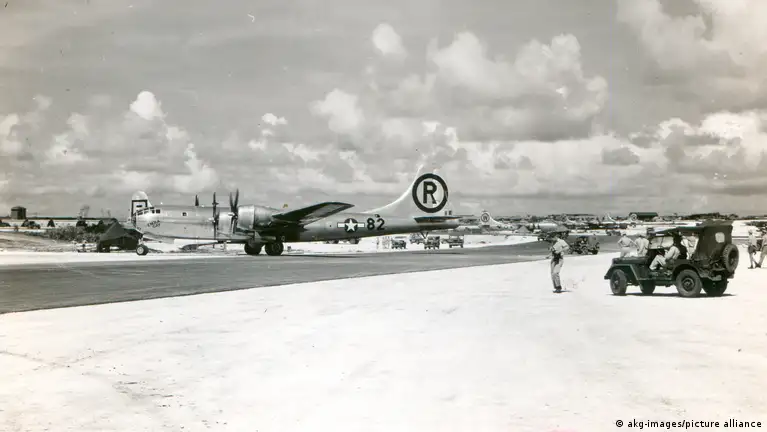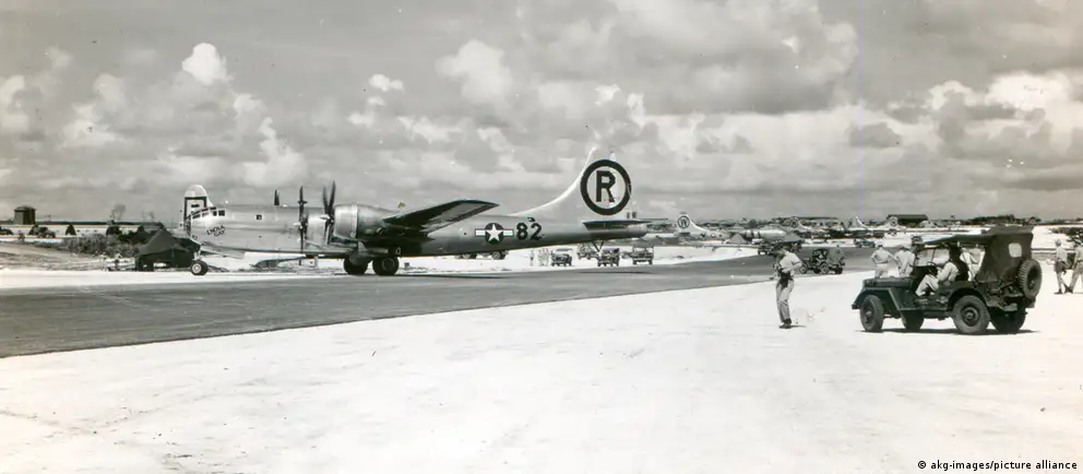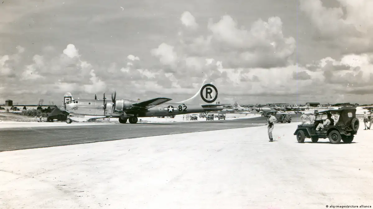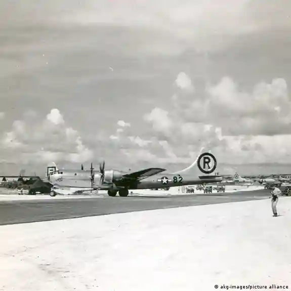 In der Nacht um 1:37 Uhr Ortszeit startete von einem Flugplatz mitten im Pazifik ein Kampfflugzeug der US-Luftwaffe. An Bord des B-29-Bombers "Enola Gay" (Artikelfoto) befand sich die erste Atombombe, die Stunden später über der japanischen Stadt Hiroshima abgeworfen wurde. Das war am 6. August 1945.