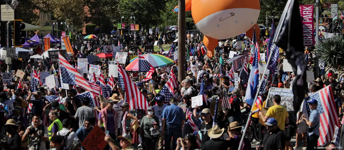 Trumps Gegner werfen ihm und seinem Umfeld vor, gezielt Eskalation zu befeuern und den Einsatz des Militärs gegen Andersdenkende zu normalisieren. Mehrere von den im US-Parlament oppositionellen Demokraten regierte Städte und Bundesstaaten gehen inzwischen juristisch gegen die Entsendung der Nationalgarde in ihre Gemeinden vor.