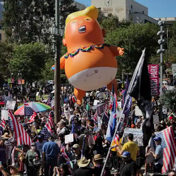 Bei zahlreichen Kundgebungen trugen Teilnehmende Transparente, auf denen Trump als Josef Stalin, Königin von England oder Sonnenkönig Ludwig XIV. dargestellt wurde. Viele riefen ihn in Slogans zum Rücktritt auf. Andere forderten die Abschaffung der Einwanderungspolizei ICE, die seit Monaten auf Trumps Anweisung verstärkt gegen irreguläre Migrantinnen und Migranten vorgeht.