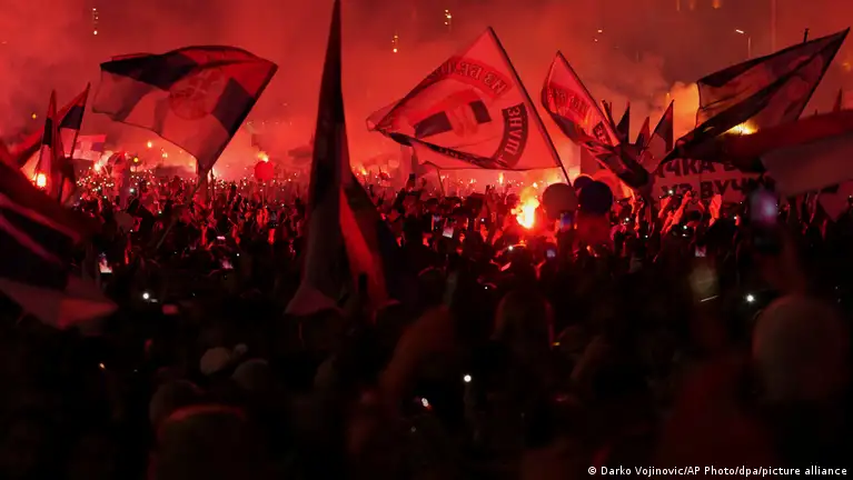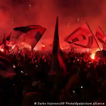 Ein Meer serbischer Flaggen, Stände mit Pljeskavica, einem Gericht aus gegrilltem Hackfleisch, patriotische Lieder und Parolen zur "Erhaltung des Staates" - Belgrad ist die Kulisse für ein riesiges politisches Spektakel, inszeniert von der regierenden Serbischen Fortschrittspartei (SNS).