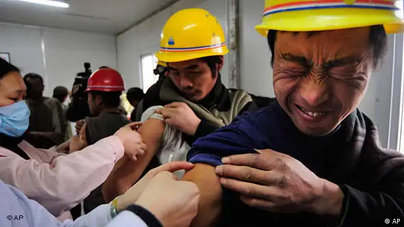 Bild: APAuch wenn's piekst - die chinesischen Behörden fürchten eine neue Schweinegrippewelle und haben deshalb vor allem in ländlichen Gebieten ihre Impfkampagne verstärkt. Besonders durch die bevorstehende Reisewelle zum Neujahrsfest könnte das Virus massiv ins Hinterland getragen werden. Bisher sind nach offiziellen Zahlen in China knapp 650 Menschen an der Schweinegrippe gestorben. (rey/AP)