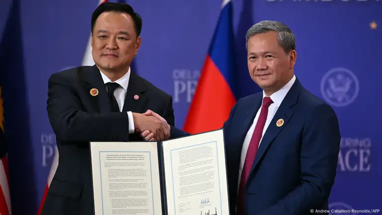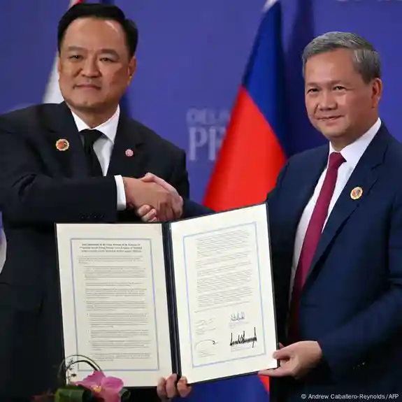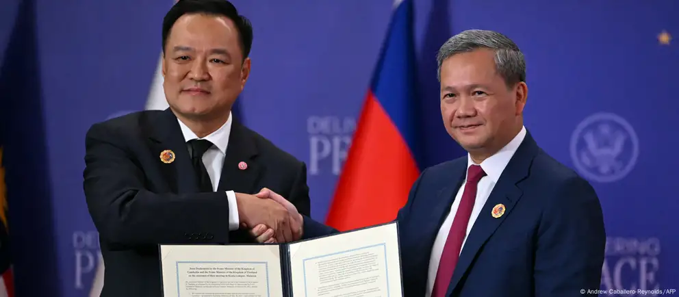 In dem nun unterzeichneten Friedensabkommen, auf das Trump gedrängt hatte, geht es nach Angaben des thailändischen Verteidigungsministeriums unter anderem um den Abzug schwerer Waffen aus dem Grenzgebiet sowie um gemeinsame Minenräumung. Vorausgegangen waren tagelange Verhandlungen zwischen beiden Ländern. Kambodschas Regierungschef Hun Manet sprach von einem "historischen Moment".