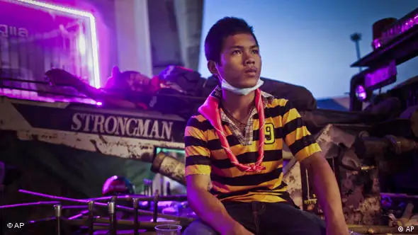 Ein oppositioneller Demonstrant beobachtet das Aufmarschieren von Soldaten in Bangkok. Armeeeinheiten patrouillieren weiter im zentralen Geschäftsviertel der thailändischen Hauptstadt. Währenddessen haben sich die Rothemden im Touristen- und Geschäftsviertel verbarrikadiert. Dort errichteten sie Barrikaden aus Bambusstöcken und Autoreifen. Armeesoldaten hatten zuvor Stacheldrahtzäune errichtet und erklärt, notfalls gegen die Demonstranten auch Schusswaffen einzusetzen. (tl/ap)