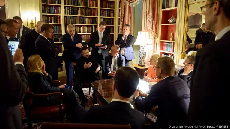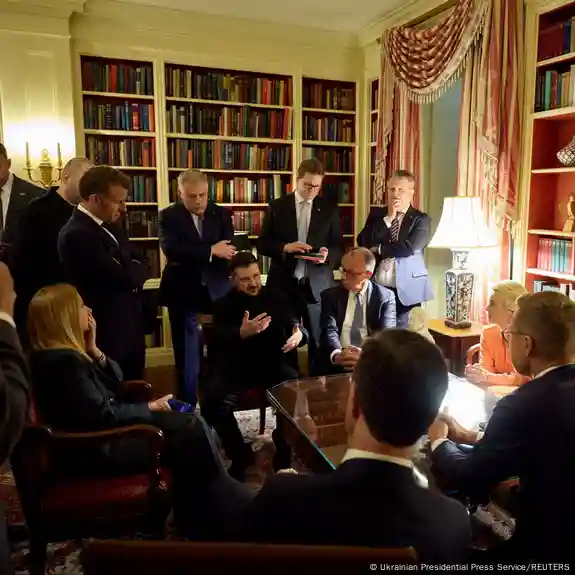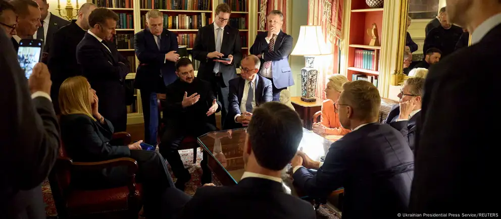 Die Europäer unterstützen in ihrer gemeinsamen Erklärung "nachdrücklich" Trumps Position, "dass die Kämpfe sofort beendet werden sollen und die aktuelle Kontaktlinie der Ausgangspunkt für Verhandlungen sein sollte". Neben Selenskyj und Deutschlands Bundeskanzler Friedrich Merz gehören zu den Unterzeichnern auch Großbritanniens Premier Keir Starmer, Frankreichs Präsident Emmanuel Macron, die Regierungschefinnen Italiens und Dänemarks, Giorgia Meloni und Mette Frederiksen, die Ministerpräsidenten von Polen und Norwegen, Donald Tusk und Jonas Störe, sowie EU-Kommissionspräsidentin Ursula von der Leyen und EU-Ratspräsident António Costa.