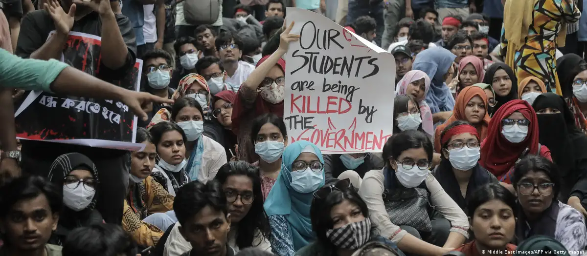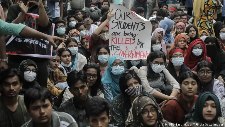 Die seinerzeit von den Studenten initiierten Massenproteste richteten sich anfangs gegen die geplante Wiedereinführung eines kontroversen Quotensystems im öffentlichen Dienst. Später forderten die Demonstranten den Rücktritt Hasinas und der Regierung.