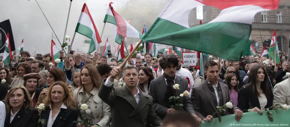 Orbans Herausforderer Peter Magyar, der mit seiner Partei Tisza (Respekt und Freiheit) gute Chancen hat, den Langzeit-Premier zu besiegen, bemühte sich in seiner Rede auf dem Budapester Heldenplatz zwar großenteils um versöhnliche Töne. Wenn unter seinen Anhängern die seit einiger Zeit üblichen "Dreckiger-Fidesz"-Rufe aufkamen, hob er am Mikrofon schnell die Stimme, um die Parolen zu übertönen. In einem großen Teil seiner Rede ging es jedoch darum, sich selbst und seine Partei zu den Wahlsiegern auszurufen und einen radikalen Systemwechsel anzukündigen.