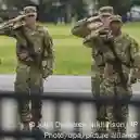 USA Washington D.C. 2025 | Nationalgardisten in Flecktarn und mit Maschinenpistolen  salutieren an einer Straße in Washington (20.09.2025)