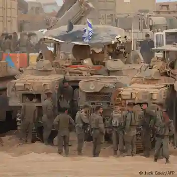 Israelische Soldaten mit gepanzerten Fahrzeugen