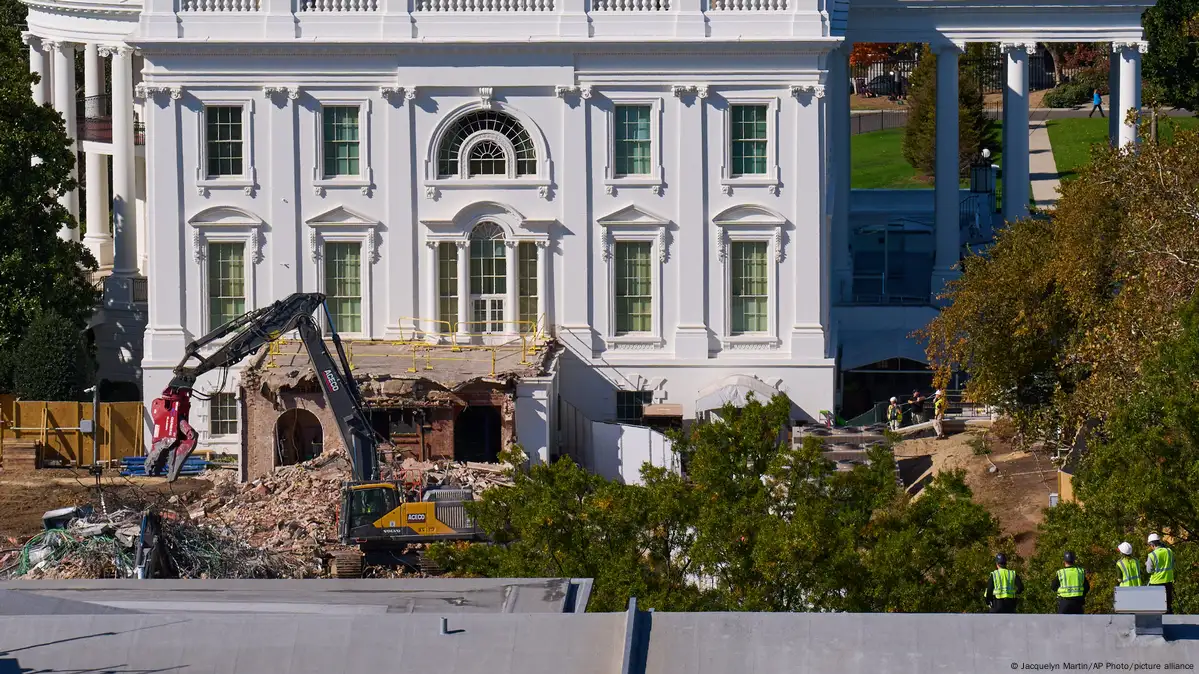 Im Zuge der Bauarbeiten für einen neuen pompösen Ballsaal im Weißen Haus ist der Ostflügel des historischen Gebäudes inzwischen vollständig abgerissen worden. US-Präsident Donald Trump sagt, er habe nach Rücksprache mit Architekten entschieden, dass ein vollständiger Abriss einem Teilabriss vorzuziehen sei.