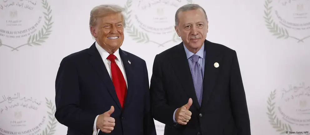 Auch beim Gaza-Gipfel in Scharm el Scheich platzierte Trump den türkischen Präsidenten in der ersten Reihe. Er gehörte zu den vier Unterzeichnern der Gaza-Friedenserklärung, neben den Staatsoberhäuptern der USA, Ägyptens und Katars, während europäische Staats- und Regierungschefs sich mit Plätzen auf den hinteren Bänken begnügen mussten. Bei der Gelegenheit bekräftigte Trump erneut, Erdogan sei ein guter Freund, der ihm immer zur Seite stehe.