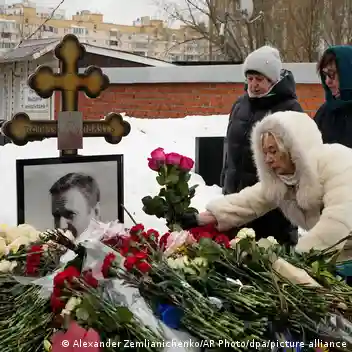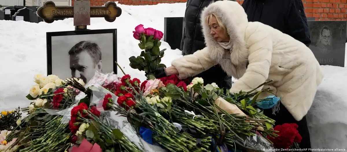 In Russia, where rallies are banned, people were laying flowers at Navalny's resting place in the Borisovskoe Cemetery.