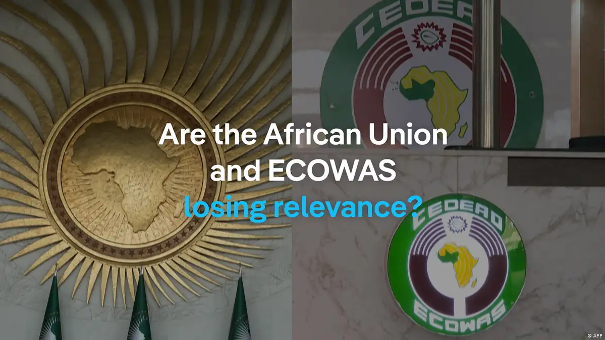 PoliticsAfricaAre the African Union and ECOWAS losing relevance?01:42This browser does not support the video element.PoliticsAfricaLolade Adewuyi07/24/2025July 24, 2025Conflict in Sudan, coups in the Sahel and the breakaway of three West African nations raise questions about the strength of the AU and ECOWAS. Are these continental and regional bodies still relevant or just symbolic?Copy linkAdvertisement
