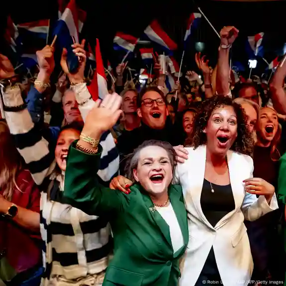 Meanwhile, cheers and chants of "Yes, we can" broke out at the D66 election night celebration, with the crowd waving Dutch flags.