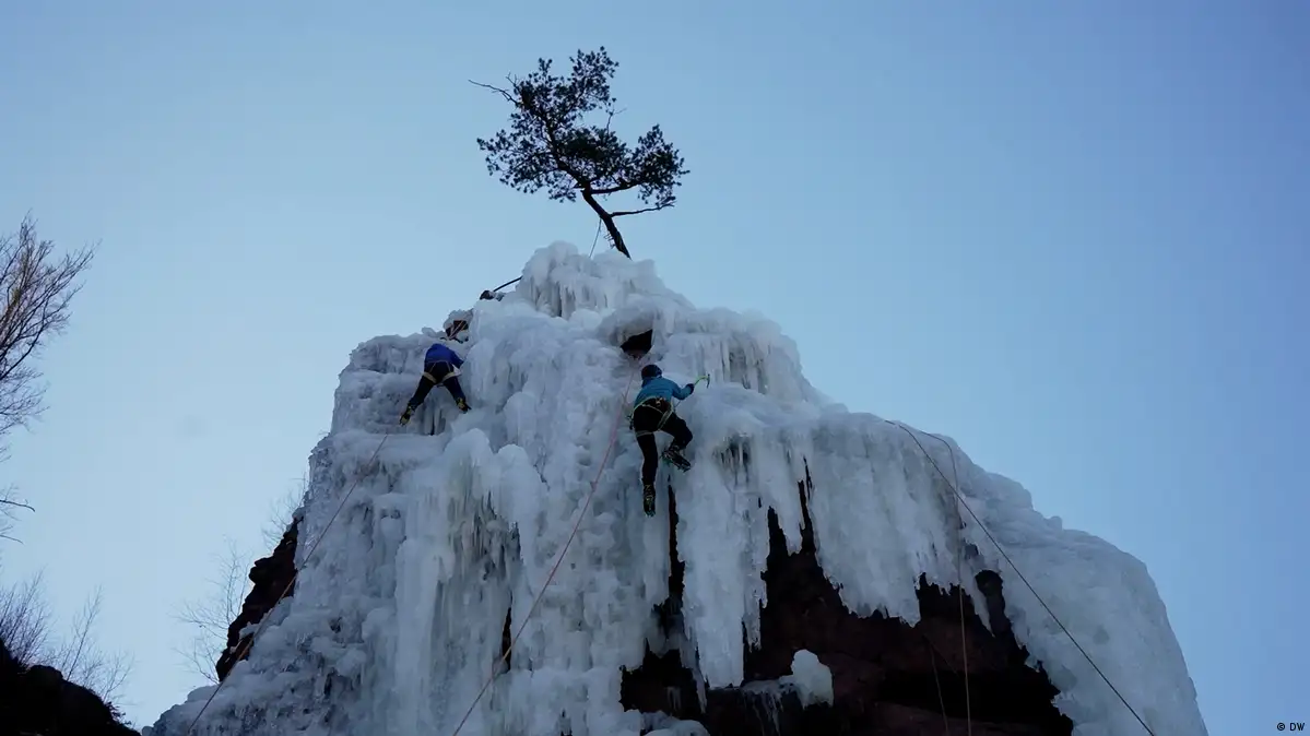 A severe cold spell has pushed temperatures in Central Europe down to minus 30 degrees , but in the village of Vir, about 200 kilometers (124 miles) from Prague, climbers are heading outdoors. Each winter, this Czech village becomes a gathering point for climbing enthusiasts, thanks to the artificial man-made icefall. The imposing formation is created by directing water over the rocky towers, which freeze into nearly 45-meter (148 feet) cascades during the coldest weeks of the season.