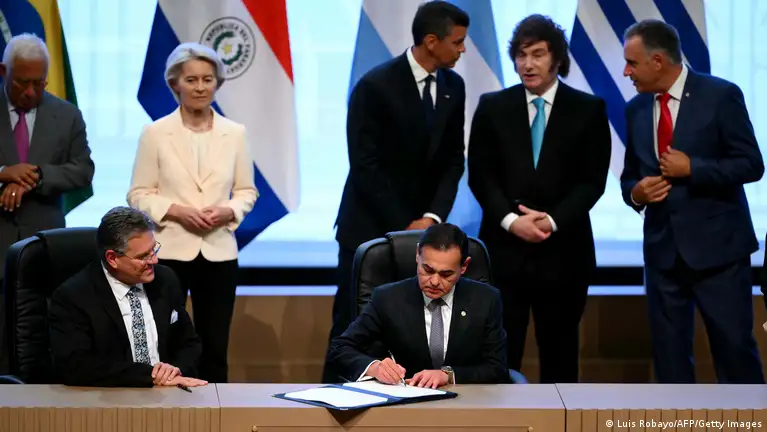 The European Union and South American bloc Mercosur signed a long-delayed free trade agreement on Saturday in Asuncion, Paraguay, creating one of the world's largest free trade zones.