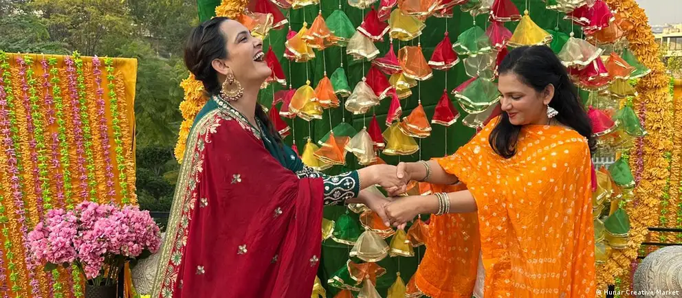 Imran told DW that the mehndi event of a traditional Pakistani wedding, usually the first-day event of a typically three-day wedding, especially brings women together to apply henna, sing, dance and celebrate.