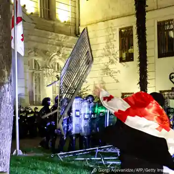 Georgian police on Saturday fired tear gas at anti-government protesters to force them away from the presidential palace in the capital, Tbilisi.