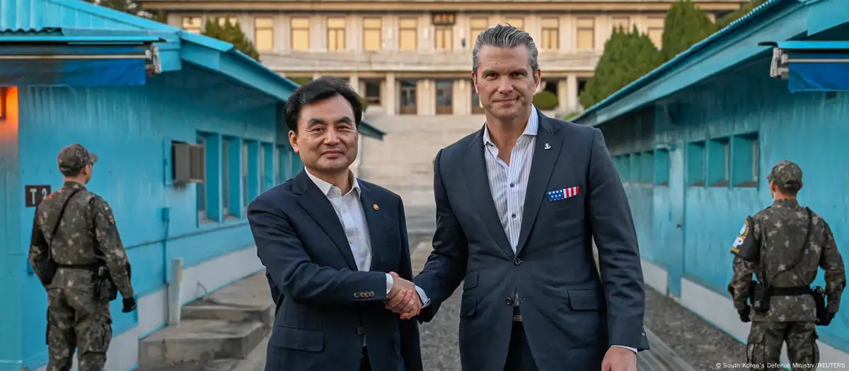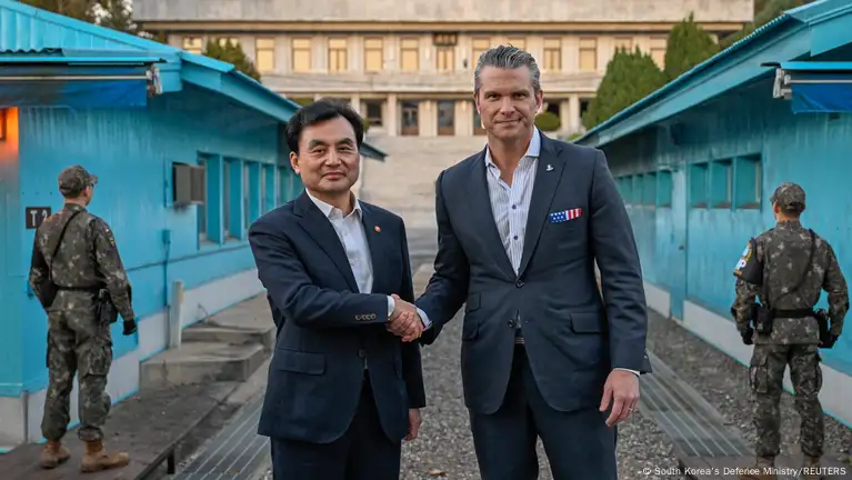US Defense Secretary Pete Hegseth on Monday began his visit to South Korea by touring the demilitarized zone (DMZ) between North and South Korea with his South Korean counterpart, Ahn Gyu-back.