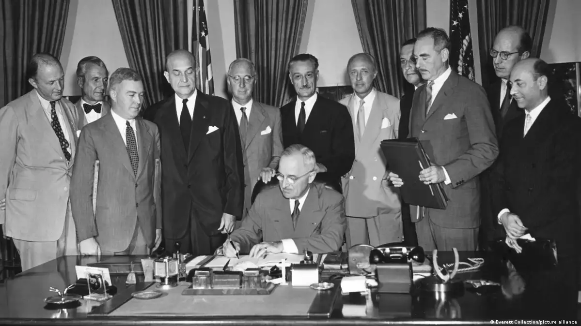 ConflictsGlobal issuesHow the US led 'the West' after World War II03:45This browser does not support the video element.ConflictsGlobal issuesRalph Martin05/08/2025May 8, 202580 years after the end of World War II, US President Donald Trump is attacking many international institutions that have helped prevent a third global conflict. DW takes a look at the postwar order, led by the US.Copy linkAdvertisement