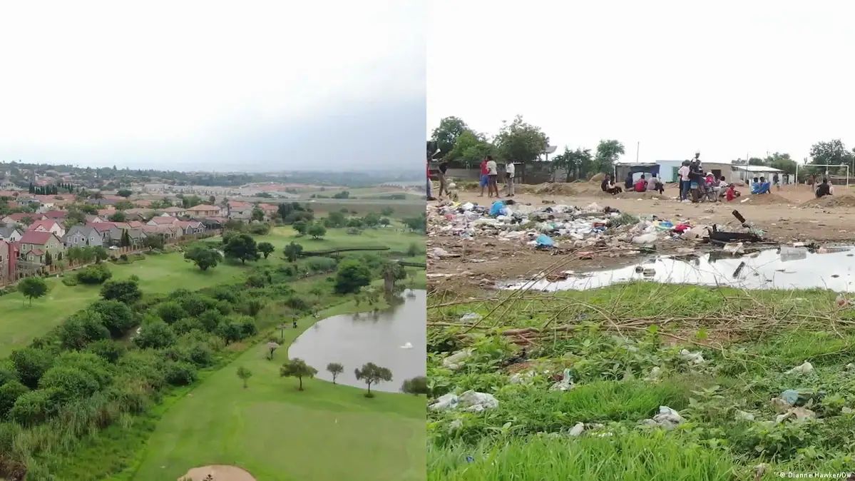 Just 15 km apart, Johannesburg's Diepsloot and the wealthy suburb Thatchfield show stark inequality persisting 30 years after the end of Apartheid.