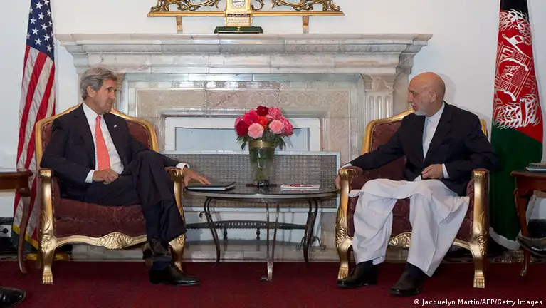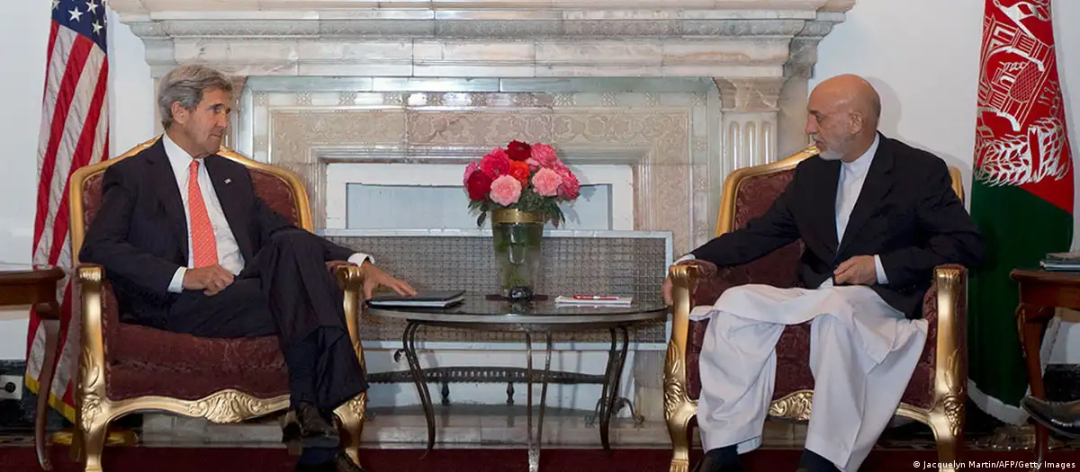 Hamid Karzai and US Secretary of State John Kerry met Friday (pictured above) for their first round of talks. They appeared to have reached an agreement on the first of the two sticking points: a US request to run independent counterterrorism missions on Afghan territory.