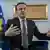 Kosovo Prime Minister Albin Kurti looks at the screen with the hand out in front of him