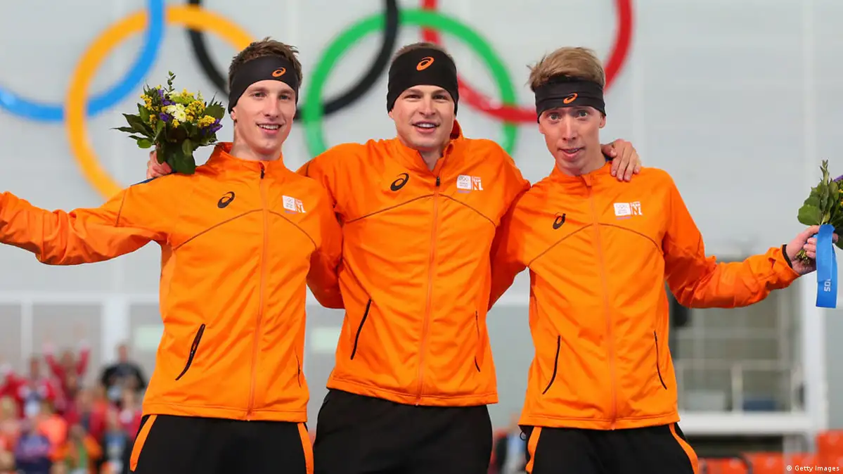 Kramer raced around the oval at Sochi with extremely consistent laps on Saturday, all falling within a range of eight tenths of a second, to win the gold medal with a time of 6 minutes, 10.76 seconds. This was almost four seconds faster than the previous Olympic record, which the 27-year-old Kramer (pictured above middle) had set on his way to winning gold at the Vancouver Winter Olympics four years ago.