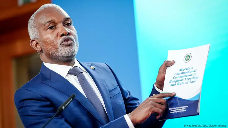 At a press conference in Berlin alongside his German counterpart Johann Wadephul, Tuggar pointed to a physical copy of his country's "constitutional commitment to religious freedom and rule of law."