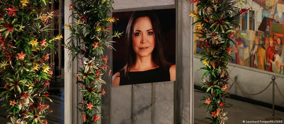 Venezuela's attorney general has announced that she would be regarded as a fugitive if she traveled to Oslo, Norway, to pick up the award, which was instead accepted by her daughter, Ana Corina Sosa Machado.