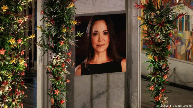 The Venezuelan opposition leader was awarded the prize in October for her efforts to move her country towards democracy and away from the disputed rule of President Nicolas Maduro.