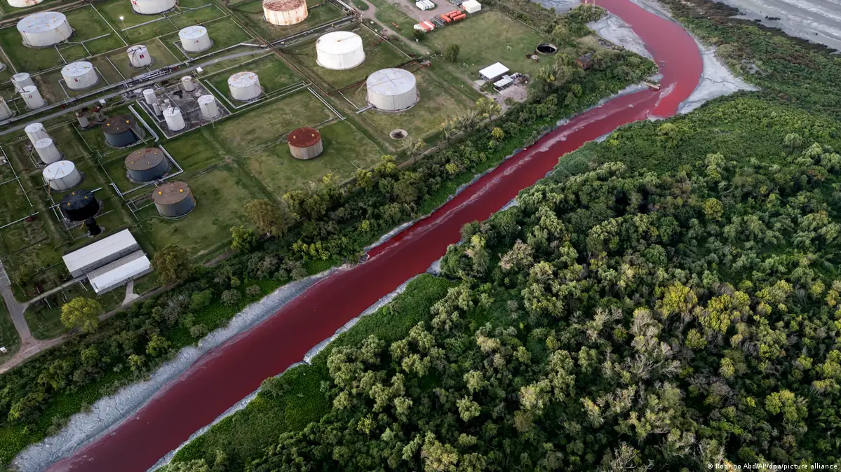 A small river on the outskirts of Buenos Aires has turned deep red, sparking pollution concerns. Authorities have collected water samples to find out the cause of the color change. Local residents fear that illegal chemical dumping by factories in the area is to blame.