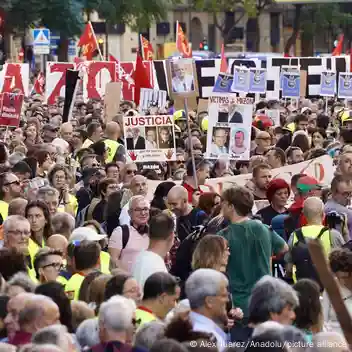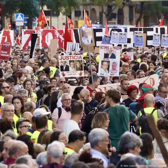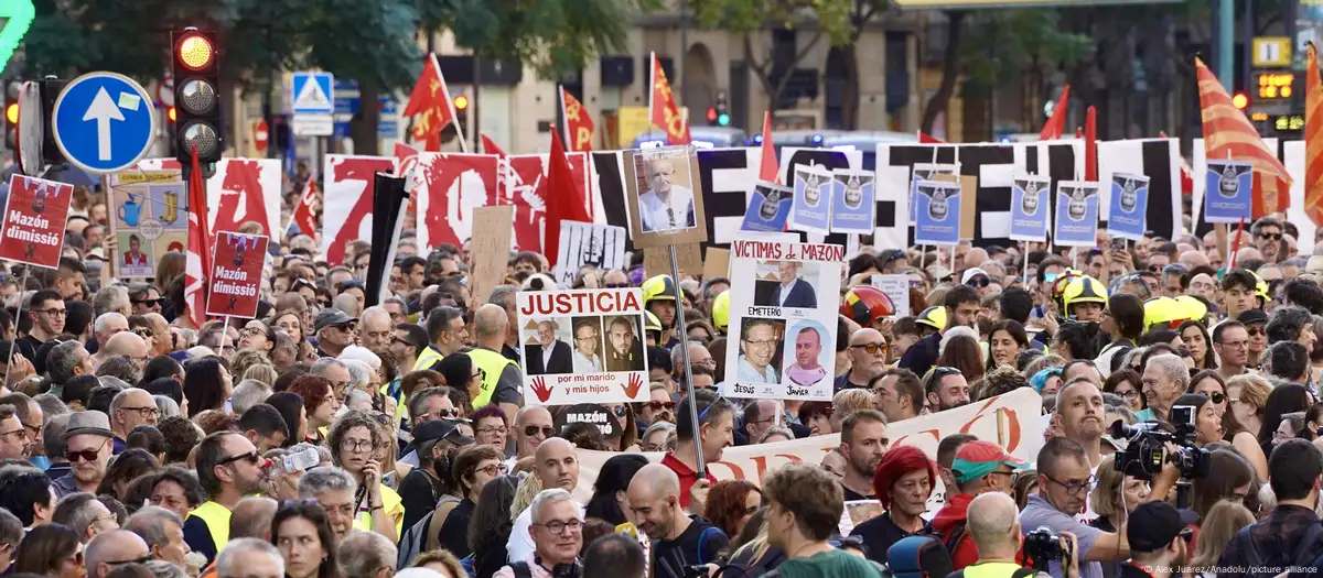 Tens of thousands of people on Saturday protested in the eastern Spanish city of Valencia, one year after the floods that killed 229 people.