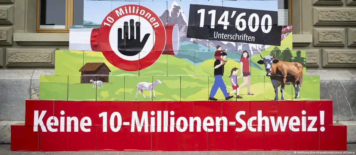 The "No to 10 million Switzerland" initiative was put forward by the right-wing, anti-immigration Swiss People's Party (SVP).