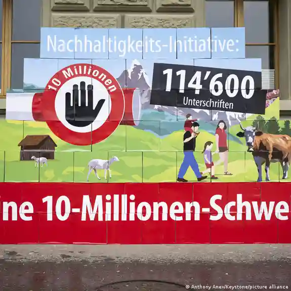 The proposal seeks to change Switzerland's constitution so that if the population — including both Swiss citizens and foreign nationals with residency papers — reaches 9.5 million before 2050, the government must take steps to limit population growth.