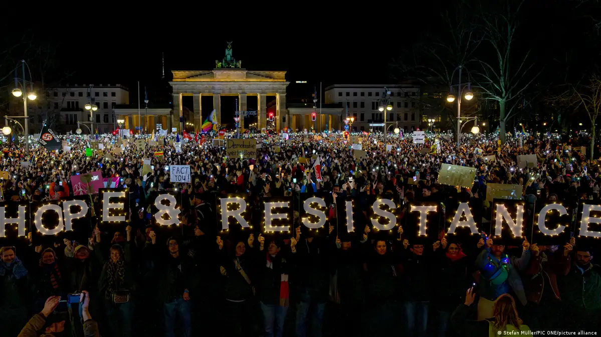 PoliticsGermanyTens of thousands in Germany protest far right02:39This browser does not support the video element.PoliticsGermanyMelissa Kent01/26/2025January 26, 2025People across Germany held rallies against the growing popularity of far-right politics. In the German capital, Berlin, protesters created a sea of light for democracy.Copy linkAdvertisement