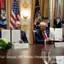 Trump was hosting Albanese Monday morning at the White House and the leaders signed the document before the media.