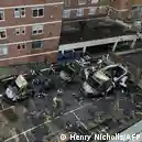 Metropolitan Police said oxygen canisters cylinders on the ambulances exploded. The windows in a nearby residential building were shattered, though no injuries were reported.