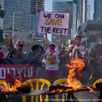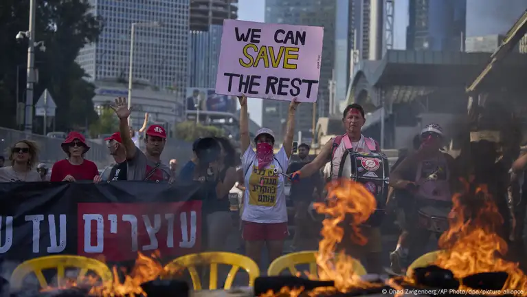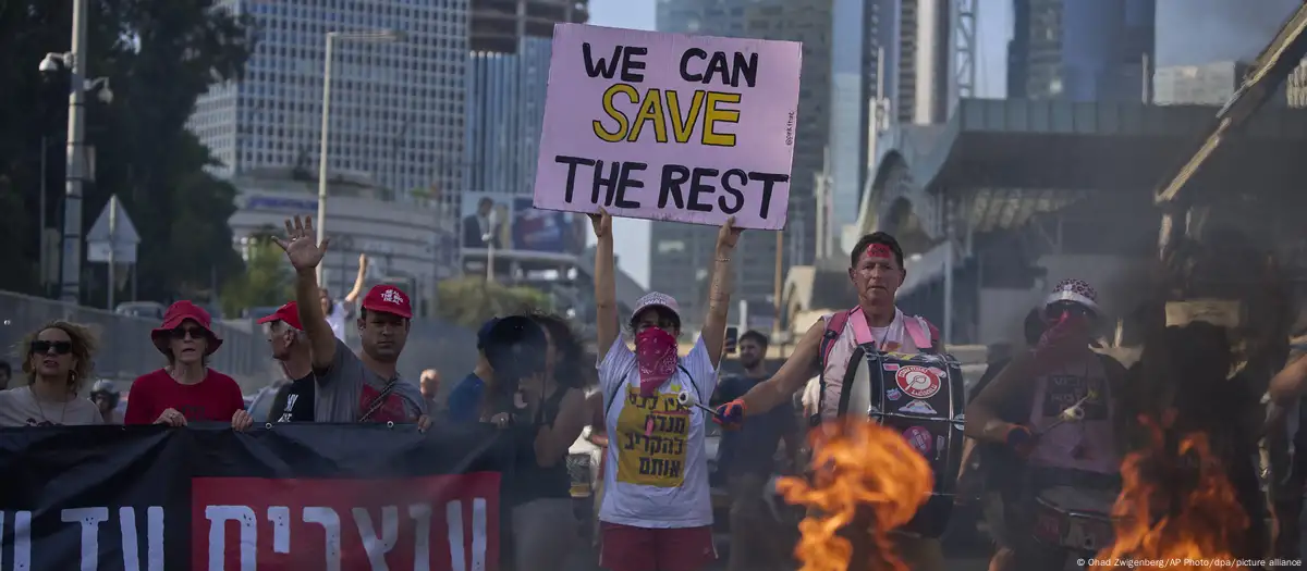 "Podemos salvar al resto", se lee en una manifestación en Tel Aviv, por la liberación de los rehenes de Hamás y el fin de la guerra en Gaza.Imagen: Ohad Zwigenberg/AP Photo/dpa/picture alliance