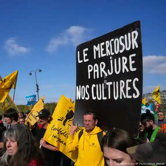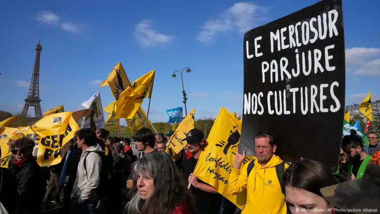 A los pies de la Torre Eiffel, cientos de agricultores franceses protestaron de nuevo este martes (14.10.2025) contra el proyecto de acuerdo comercial entre la UE y los países del Mercosur, pese a las garantías "reforzadas" ofrecidas por la Comisión Europea.