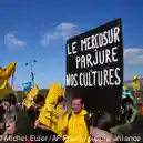 Los manifestantes convocados por la Confederación Campesina, el tercer sindicato del sector en Francia, exigieron al presidente Emmanuel Macron que "cumpla con su compromiso" de proteger a los agricultores franceses contra todo tipo de acuerdos comerciales entre el bloque comunitario y otros países terceros, ya sea con los sudamericanos de Mercosur, México u otros.
