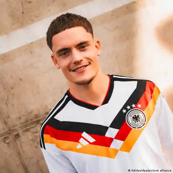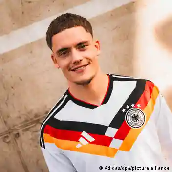La Federación Alemana de Fútbol presentó una nueva camiseta para la selección alemana, inspirada en la que usaron las selecciones campeonas del mundo en 1990 y 2014, con un fondo blanco y un diseño que va del pecho a los hombros con los colores de la bandera del país, negro, rojo y amarillo.