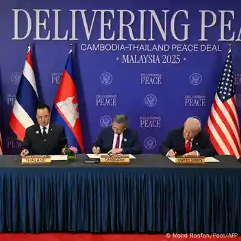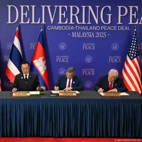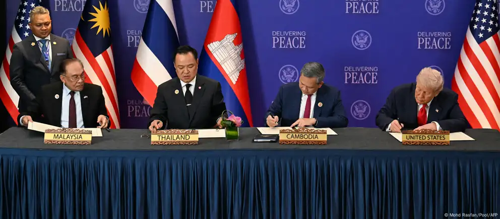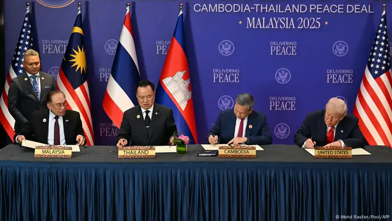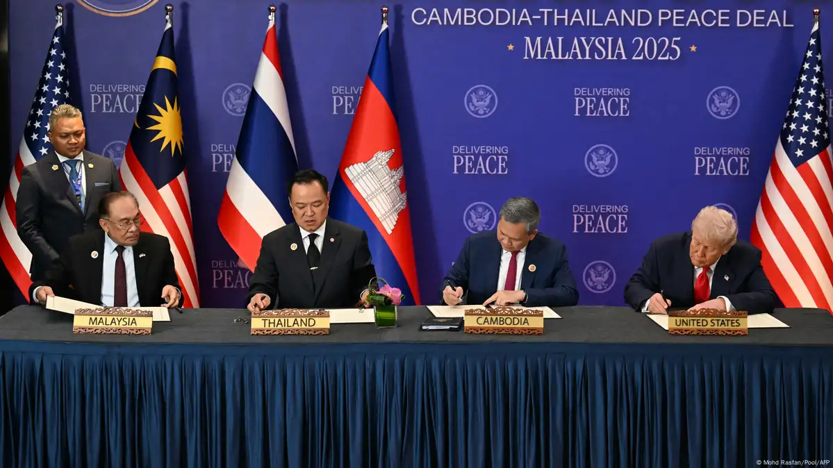 Tailandia y Camboya firmaron este domingo (26.10.2025) el acuerdo de paz en presencia del presidente estadounidense, Donald Trump, quien más temprano había anunciado que estaría de testigo en el importante acto inmediatamente después de su llegada a Malasia.