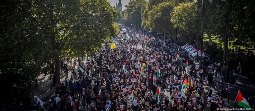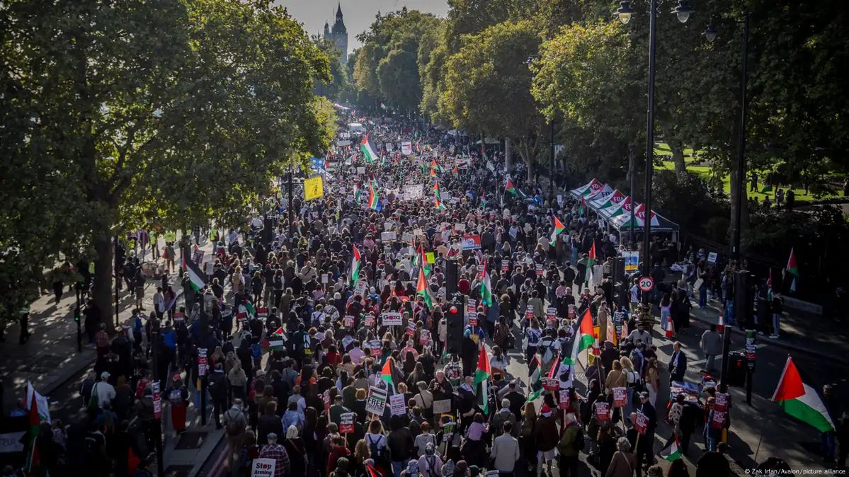 Cientos de miles de personas se congregaron este sábado (11.10.2025) en una marcha a favor de los palestinos en Londres con motivo del segundo aniversario del inicio de la guerra en Gaza y un día después de la entrada en vigor del acuerdo de alto el fuego entre Israel y Hamás.