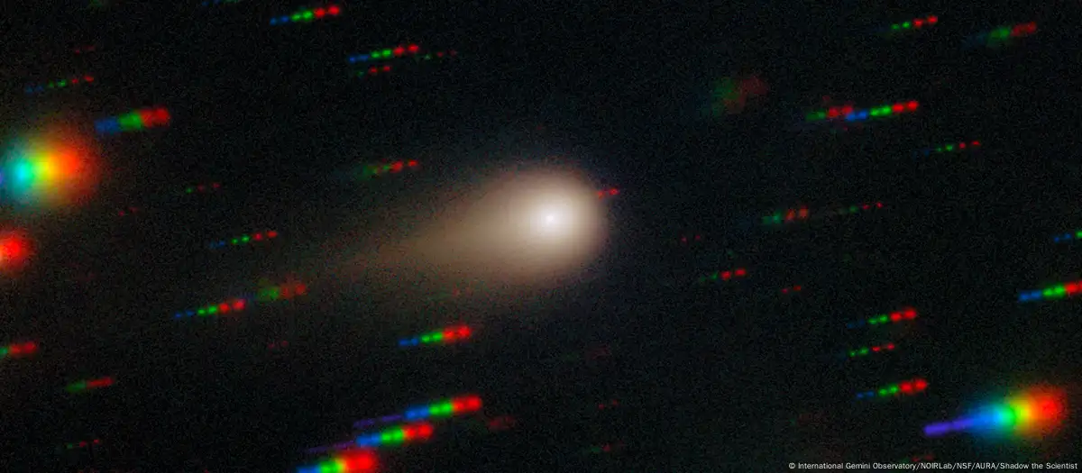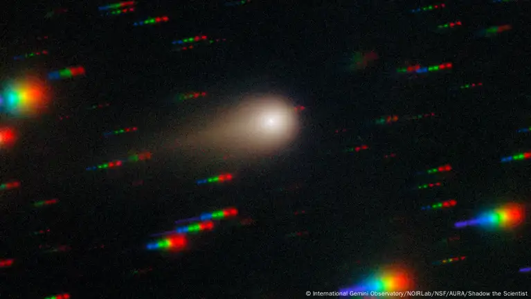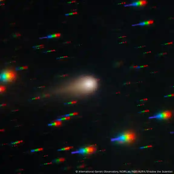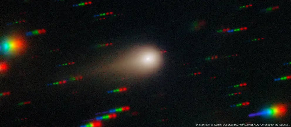 Las imágenes captadas por el telescopio Gemini Sur, en el Cerro Pachón, en los Andes chilenos, muestran que 3I/ATLAS presenta todas las características típicas de un cometa común: una coma, una cola antisolar y un característico color verde producto de la emisión de carbono diatómico, o gas cianógeno, como explica el investigador científico Bryce Bolin a Universe Today.