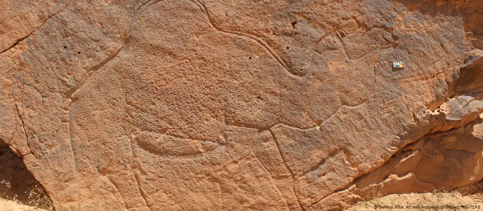 Un grupo internacional de arqueólogos descubrió tallados de camellos y otros animales a tamaño real en acantilados y rocas del desierto de Nefud, en el norte de Arabia Saudita, detalla un estudio publicado en Nature Communications.