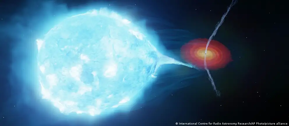 La estrella supergigante suministra material al agujero negro, dándole "algo que 'comer' y lanzar en forma de chorros", explica el investigador principal Steve Prabu, de la Universidad de Oxford.