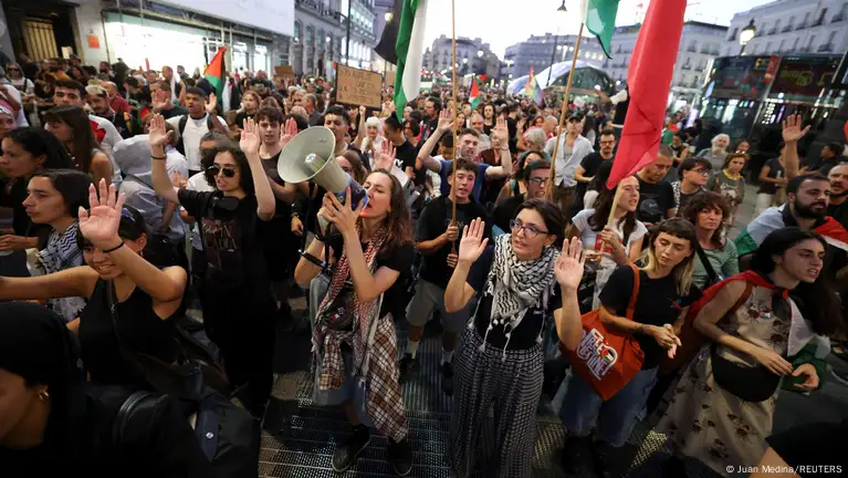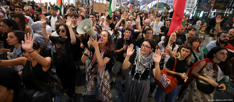 Miles de personas se manifestaron este jueves (02.10.2025) en distintas ciudades europeas, como Madrid, Roma o Bruselas, para protestar contra la intercepción de la flotilla con ayuda humanitaria para Gaza, llevada a cabo por Israel en aguas internacionales.