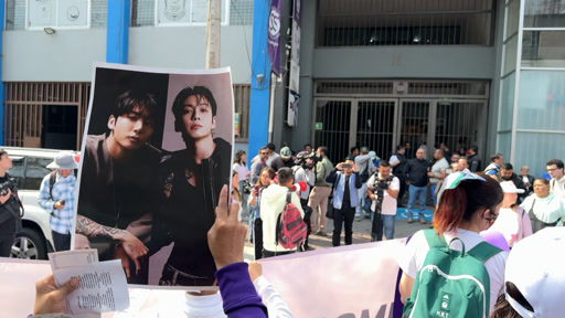 MúsicaMéxicoProtestas de los fans de BTS en México03:24This browser does not support the video element.MúsicaMéxico12/02/202612 de febrero de 2026En México, los fans de la banda coreana BTS se movilizan con miles de quejas y protestas frente a la Profeco, el órgano público en defensa del consumidor. Copiar enlacePublicidad