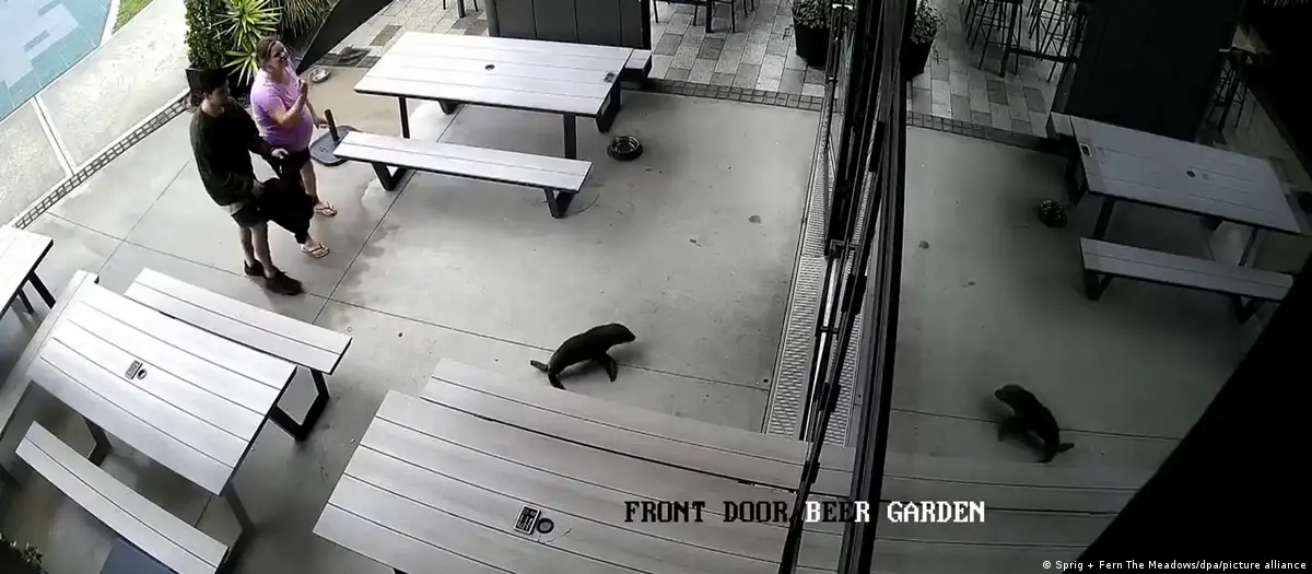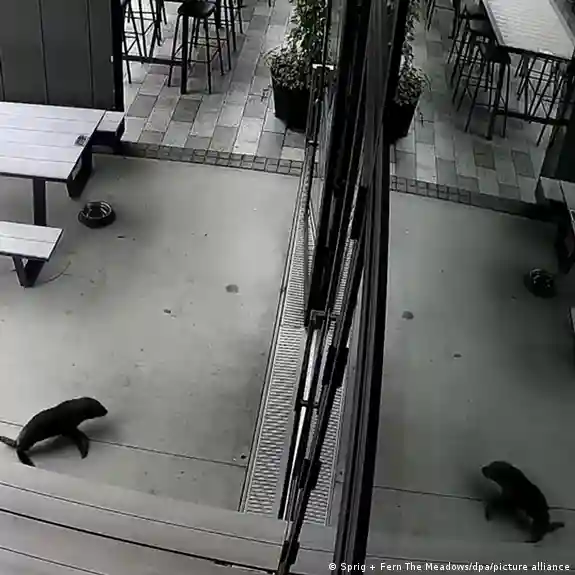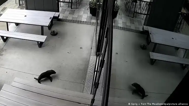 El sitio de noticias Stuff escribió, citando a los propietarios del pub, que la cría de foca había entrado tambaleándose repentinamente por la puerta principal.