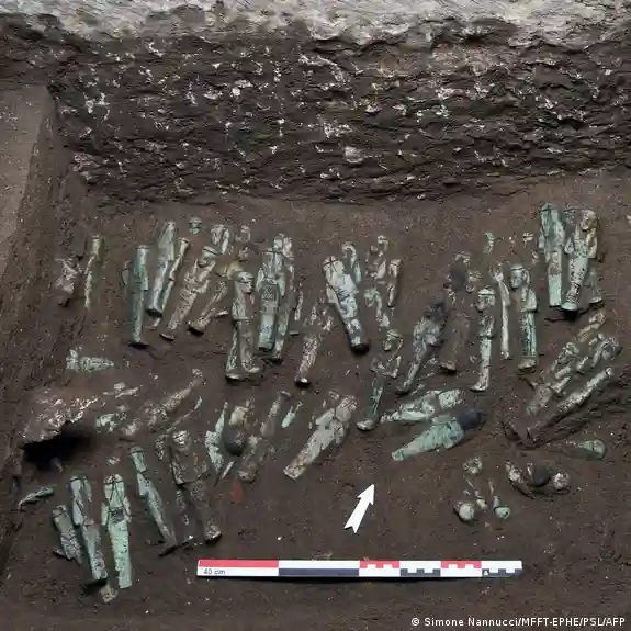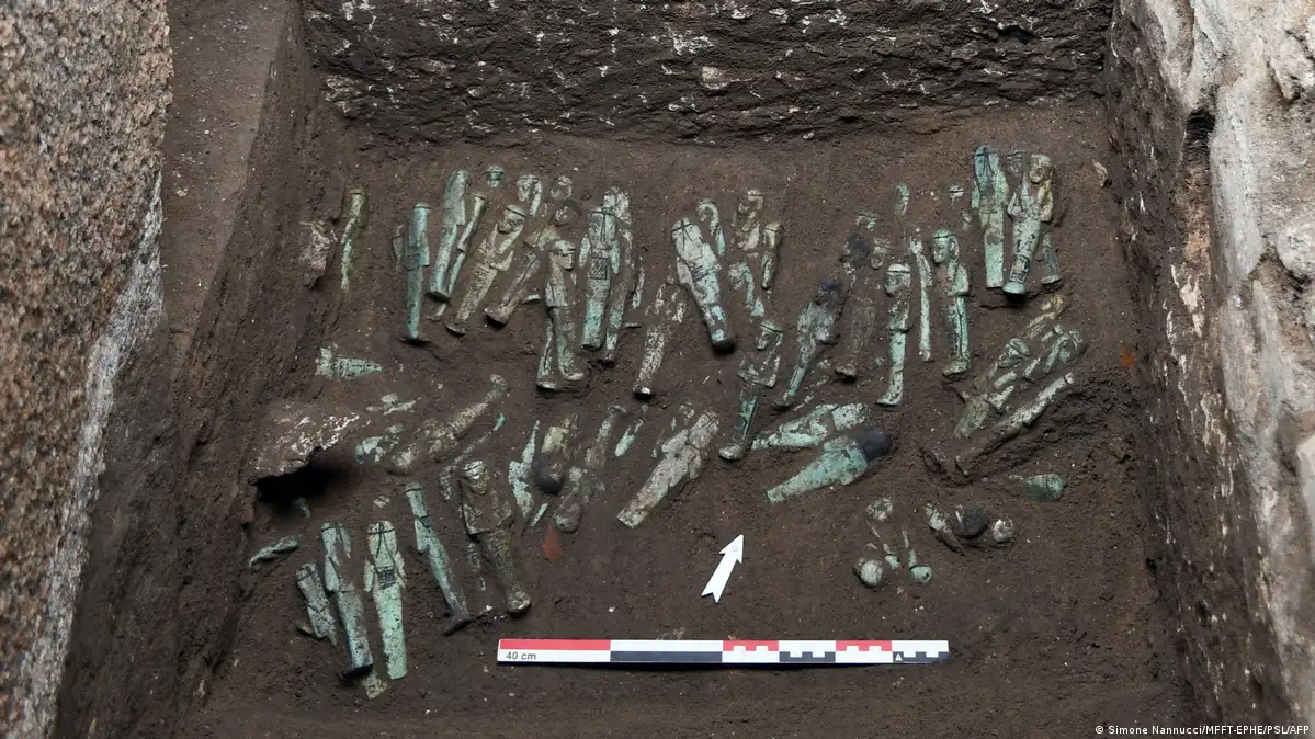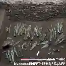Tardaron 10 días para extraer las 225 figuritas de loza verde, "colocadas cuidadosamente en forma de estrella en los lados de una fosa trapezoidal y en filas horizontales en el fondo".